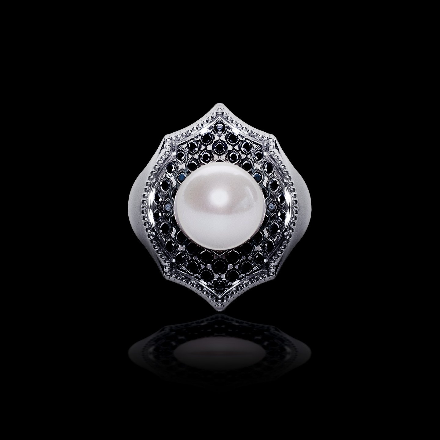 Mauresque Pearl & Black Diamond Ring