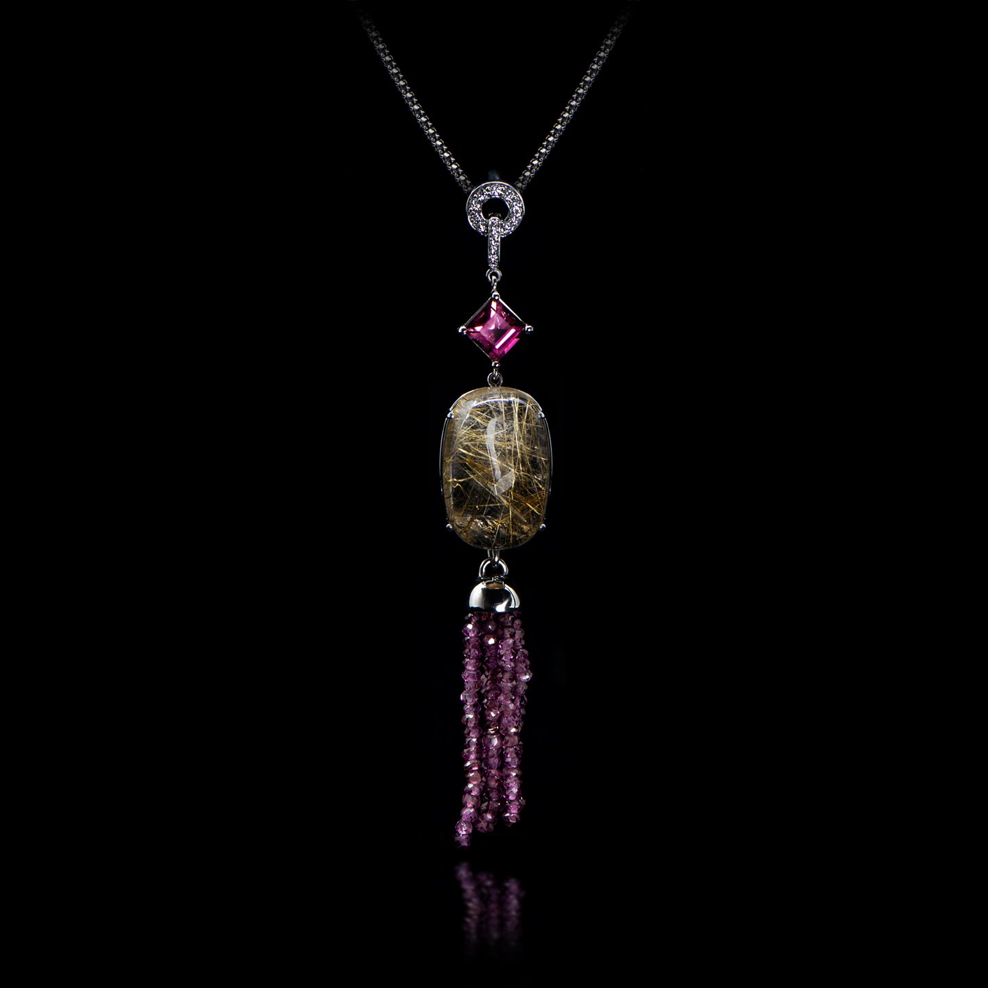 Rutilated Quartz, Tourmaline, Rhodolite Garnet & Diamond Enhancer